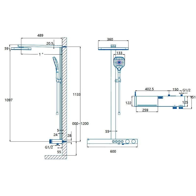 - Длина душевой штанги: 1137 мм