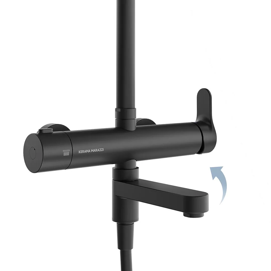- Душевая колонна FONTE c механическим смесителем рассчитана три потока (поворотный излив, верхний душ, ручная лейка). Благодаря поворотному изливу, а также возможности регулировки по высоте монтажа, может быть установлена как в душевой зоне, так и в ванной.