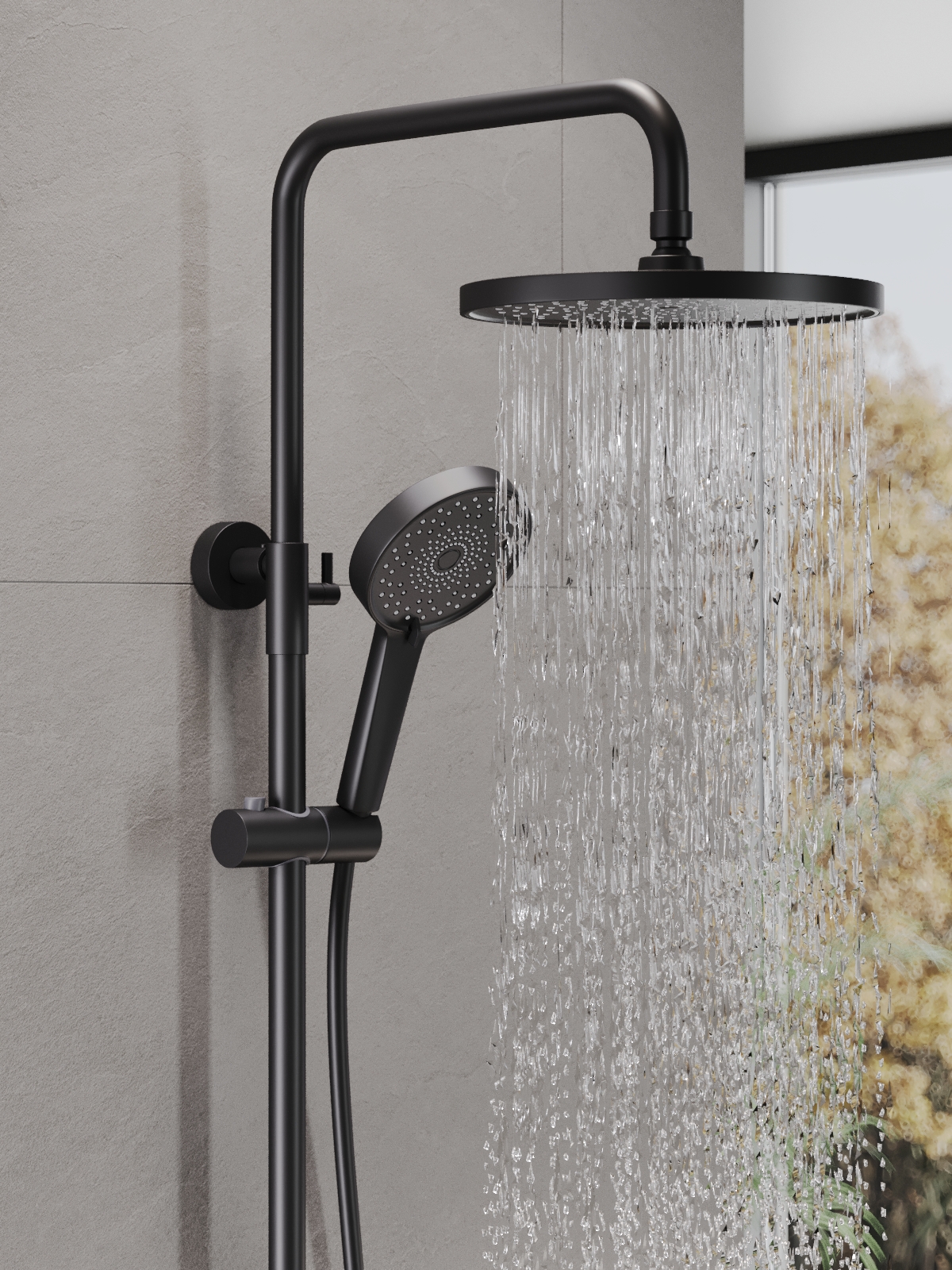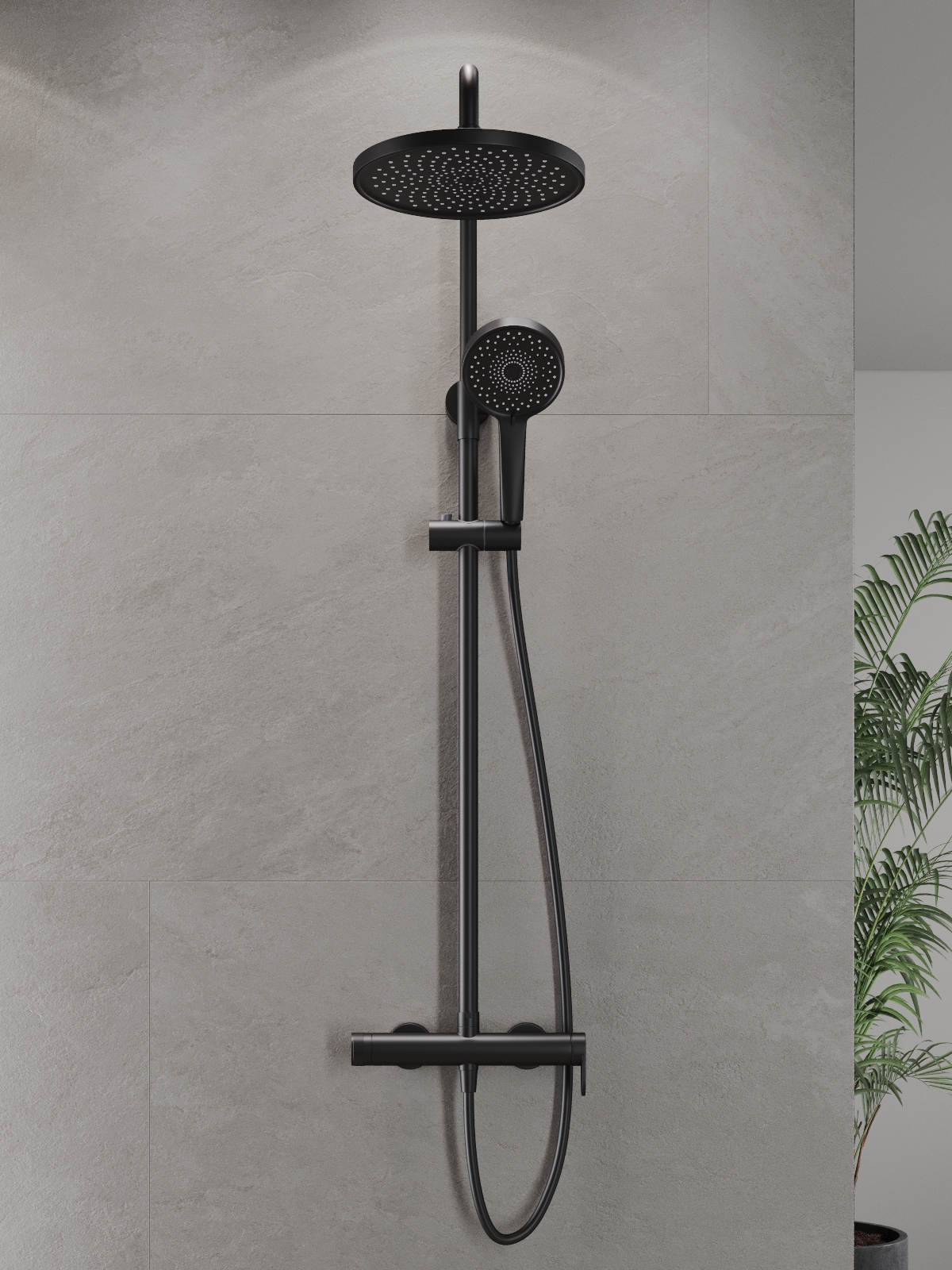 Душевая система AGGER Sweet гармонично дополнит интерьер ванной комнаты в современном стиле. Управление осуществляется с помощью эргономичного рычага, создавая идеальные условия для принятия водных процедур. Однозахватный смеситель для душа изготовлен из высококачественной нержавеющей стали, не подверженной окислению от постоянного контакта с водой. Покрытие в цвете матовый черный, за которым просто ухаживать мягкой салфеткой, нанесено методом порошковой окраски с многоступенчатой системой подготовки и высокотемпературной обработкой. Регулируемый по высоте и наклону верхний душ (d253 мм) и ручная лейка (d125 мм, 3 режима струи) доставят истинное удовольствие при принятии водных процедур (ручная лейка и верхний душ с защитой от известкового налета). Штанга (860-1210 мм) телескопическая, держатель ручного душа с регулировкой угла наклона, шланг 1500 мм PVC с защитой от перекручивания.