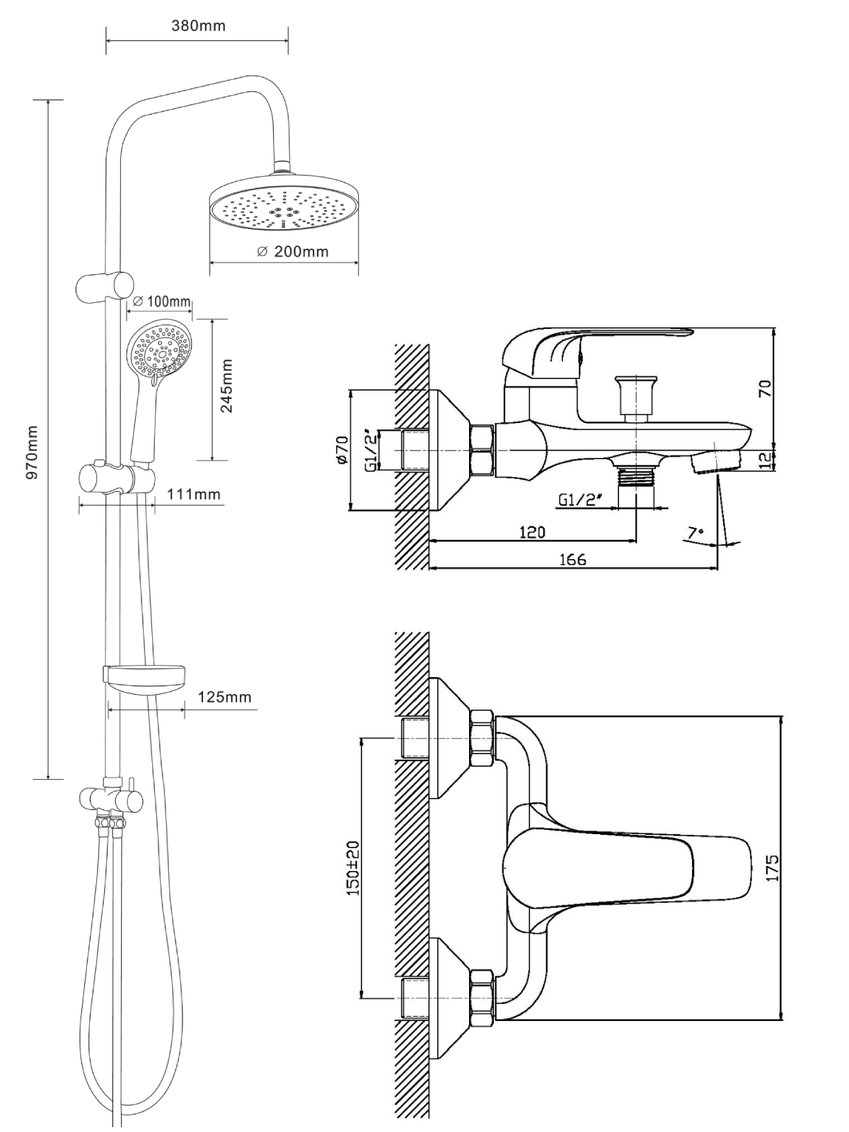 150 | Диаметр верхнего душа, см | 20 |