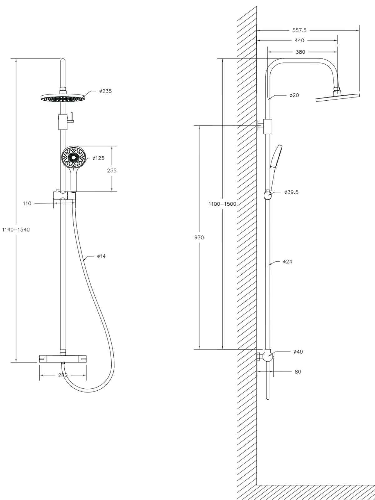 150 | Диаметр верхнего душа, см | 23.5 |