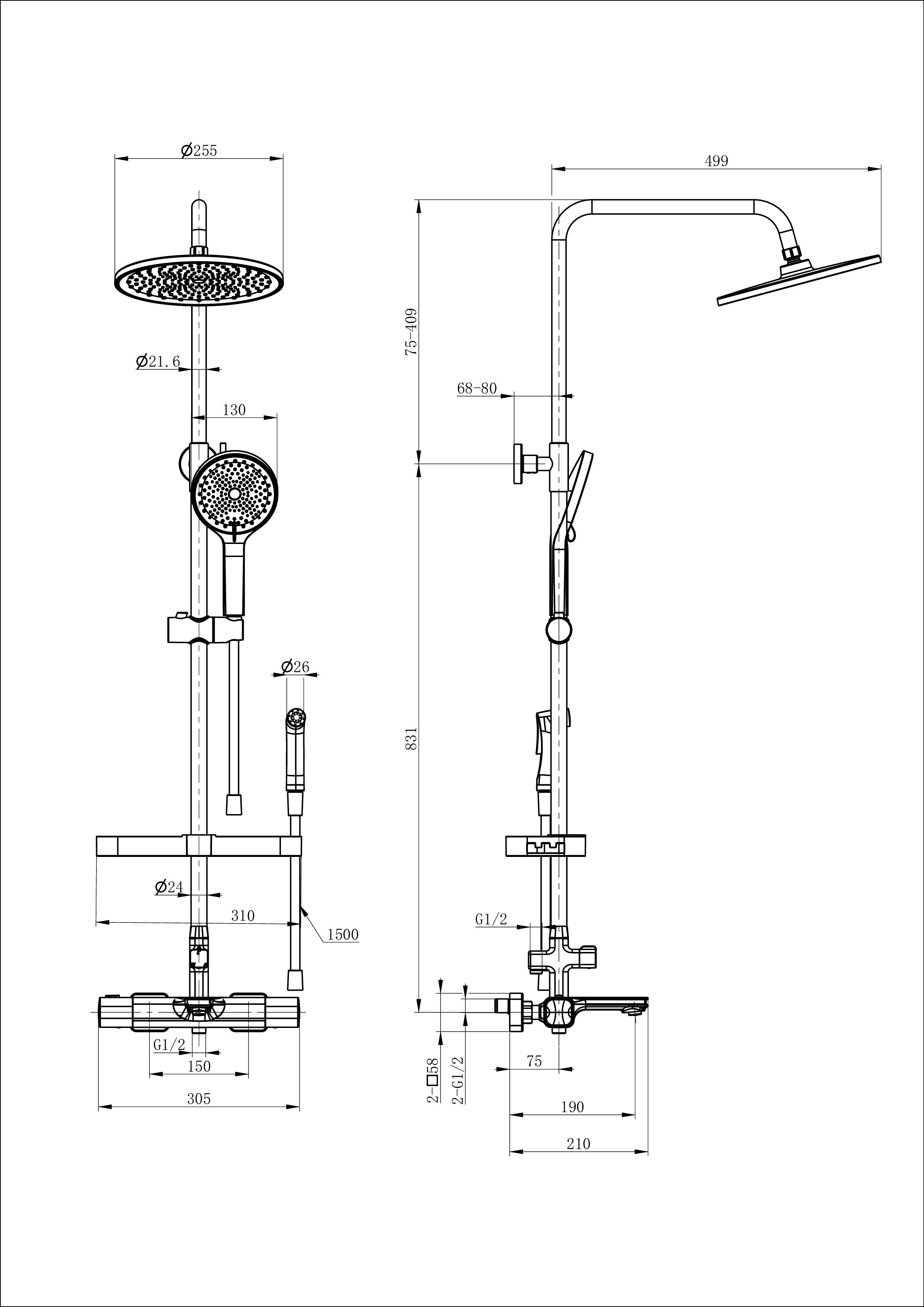 Латунь, Пластик Кол-во режима верхнего душа 1