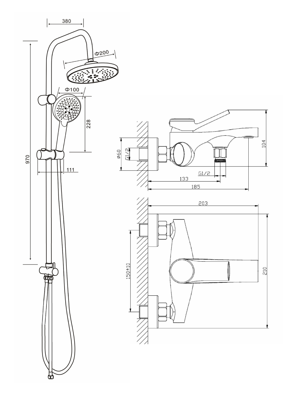 150 | Диаметр верхнего душа, см | 20 |