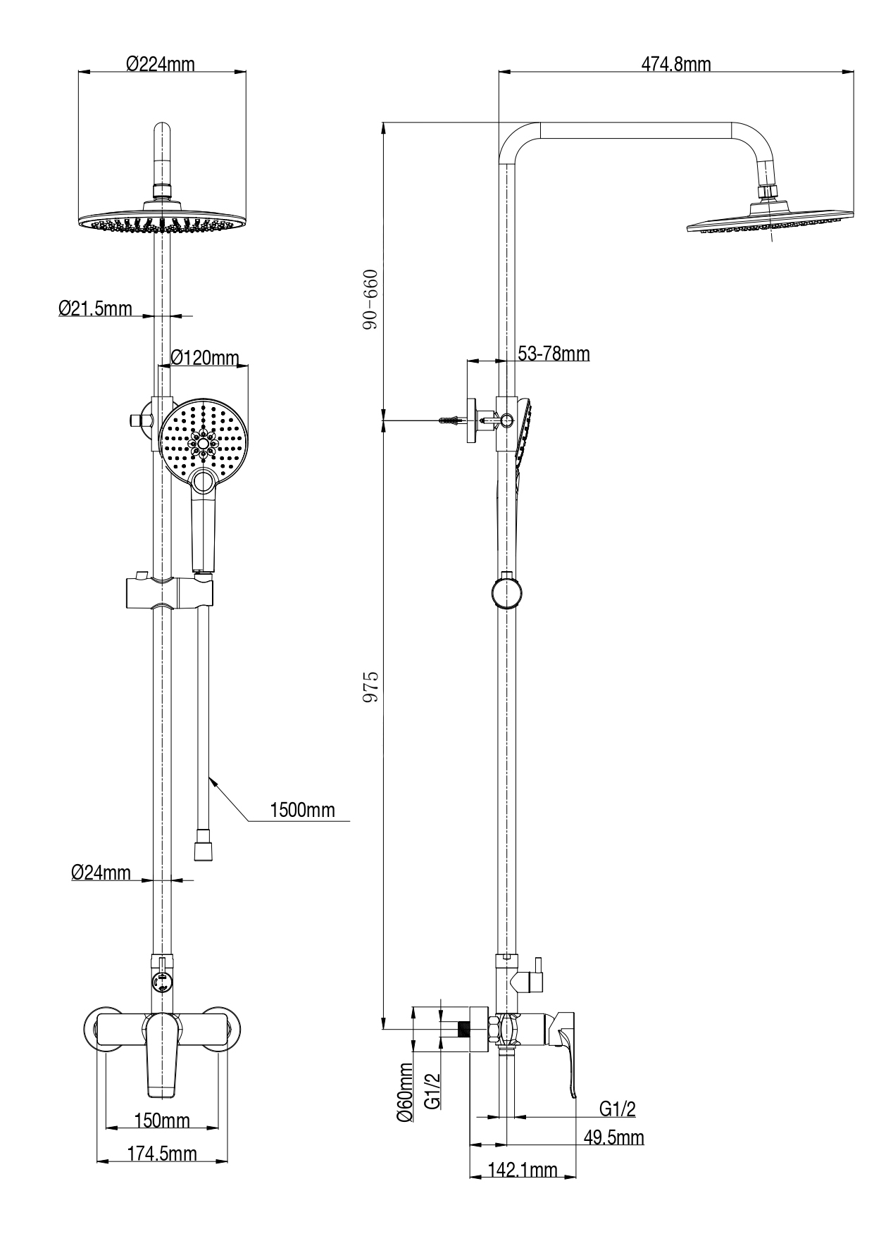 150 | Диаметр верхнего душа, см | 22,4 |