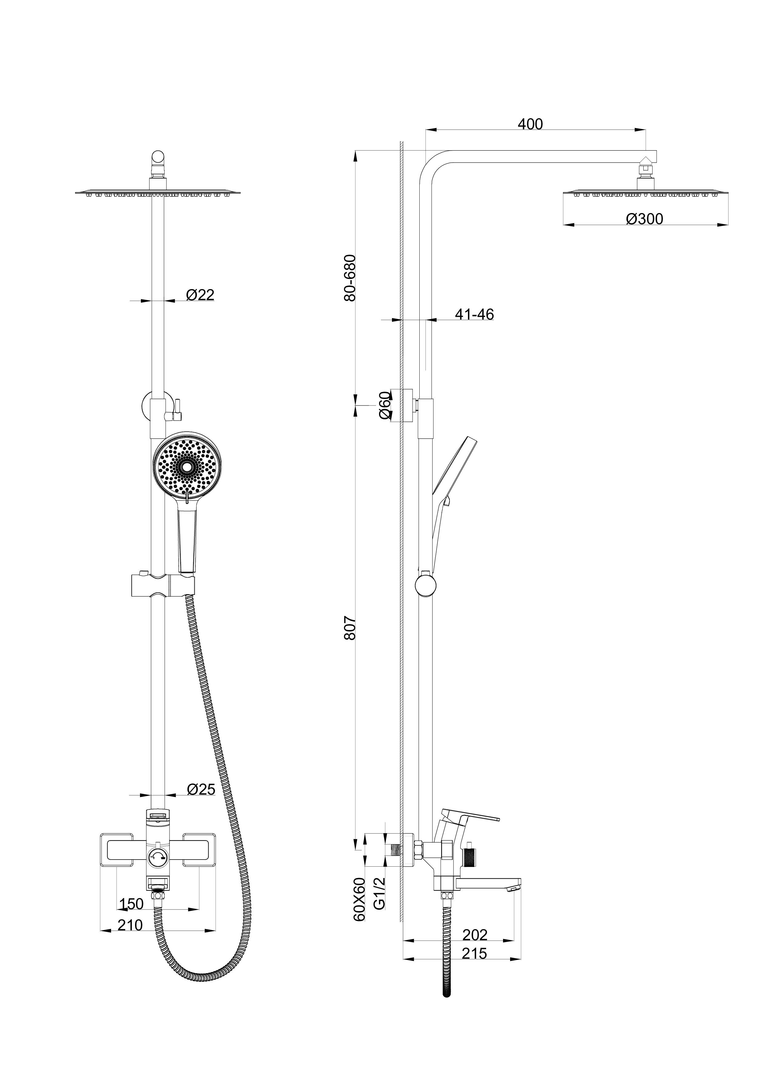 Латунь, Пластик | Кол-во режима верхнего душа | 1 |