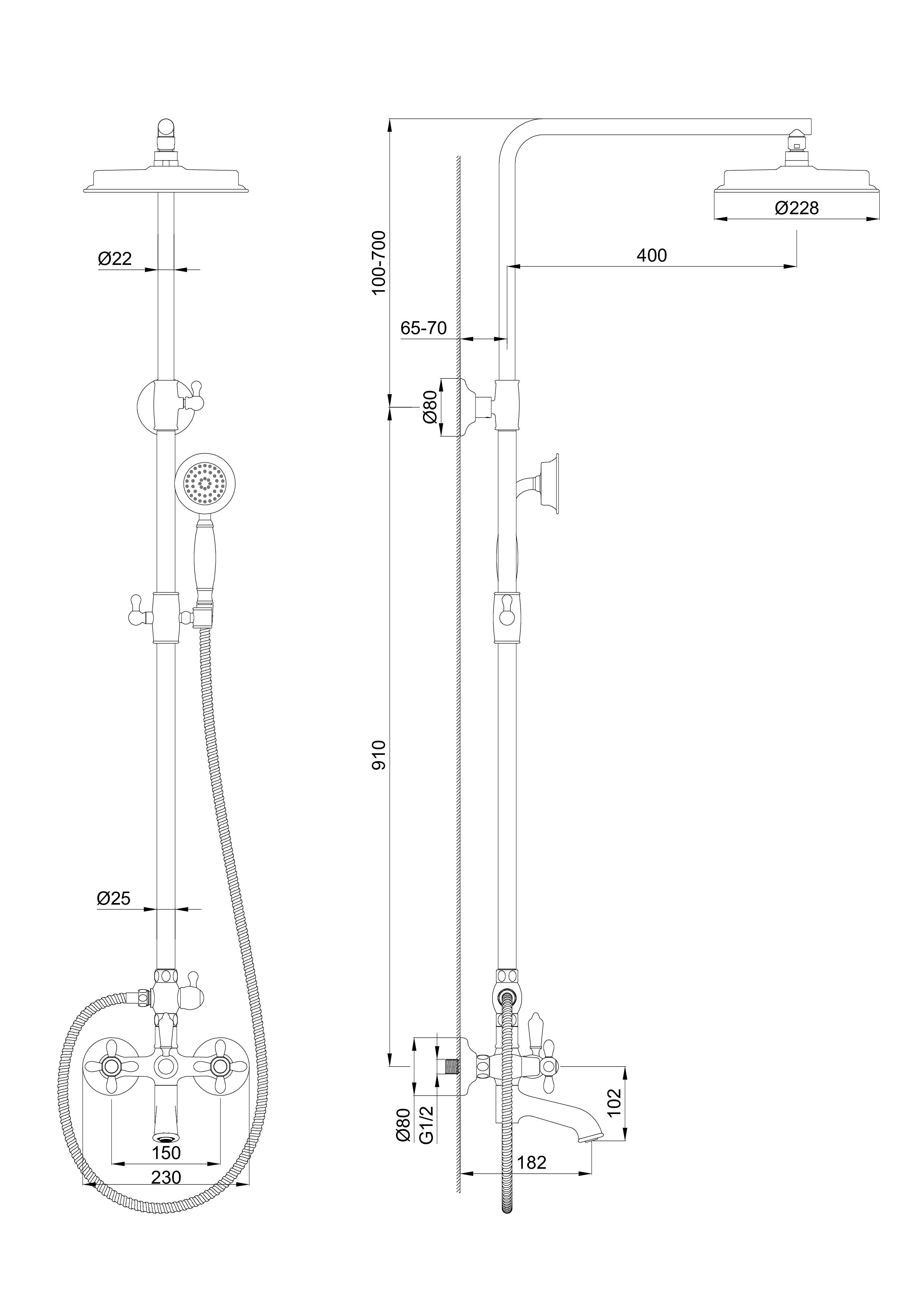 150 | Диаметр верхнего душа, см | 22,8 |