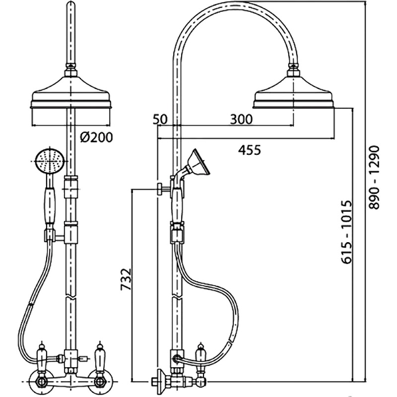 - Верхний и ручной душ