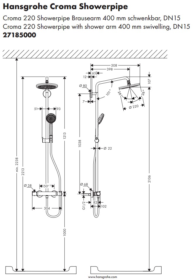 - Верхний душ Croma Ø220 мм. с QuickClean (26464 000).