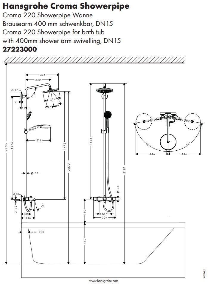 - Верхний душ Croma Ø220 мм. с QuickClean (26464000).