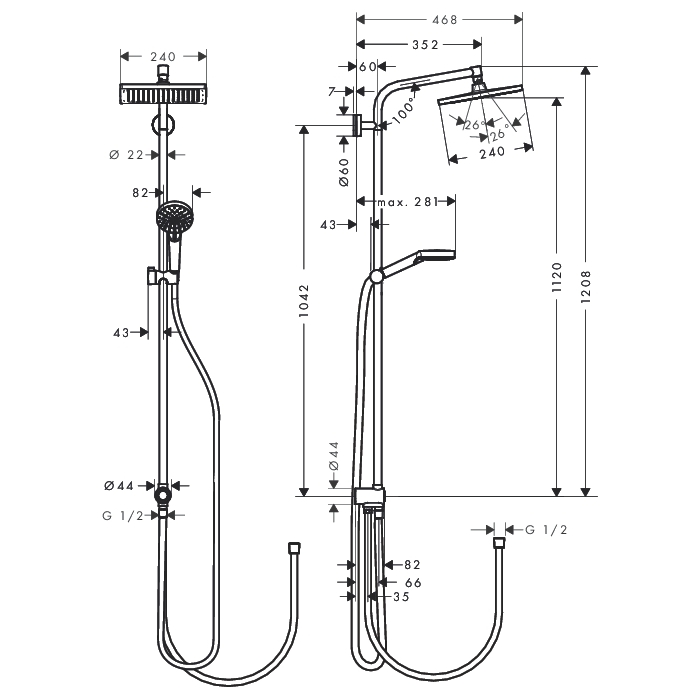 - регулируемый угол верхнего душа