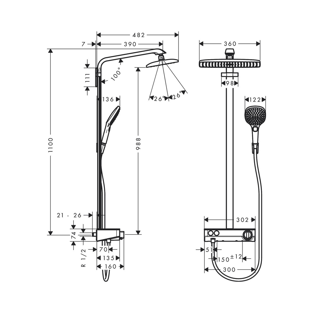 98.8 | Диаметр ручной лейки, см | 12 |