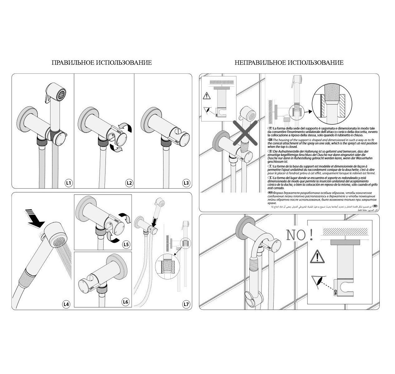 - Комплект гигиенического душа с прогрессивным смесителем на держателе с выходом воды, хром (ABS).