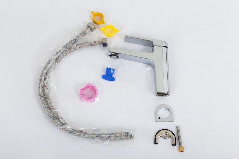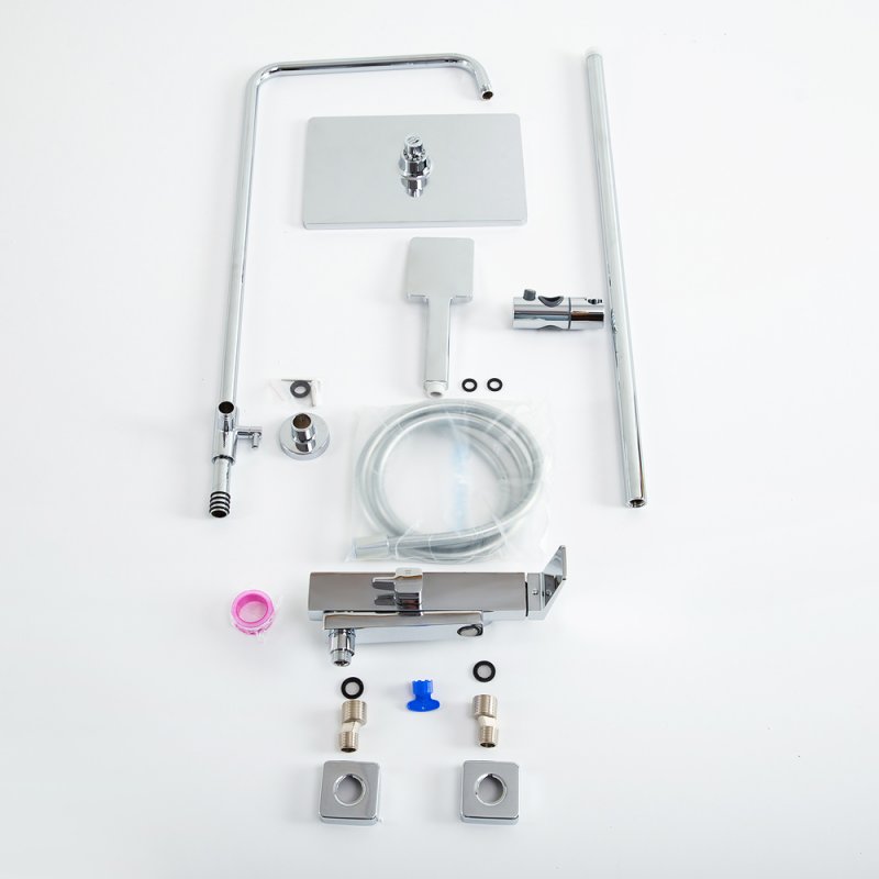 - В комплекте со смесителем: душевая лейка из ABS-пластика, душевой шланг PVC 150 см, поворотный держатель душевой лейки
