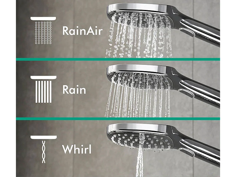 - Тип струи: Rain, RainAir (дождевая струя, обогащенная воздухом), WhirlAir (массажная струя);