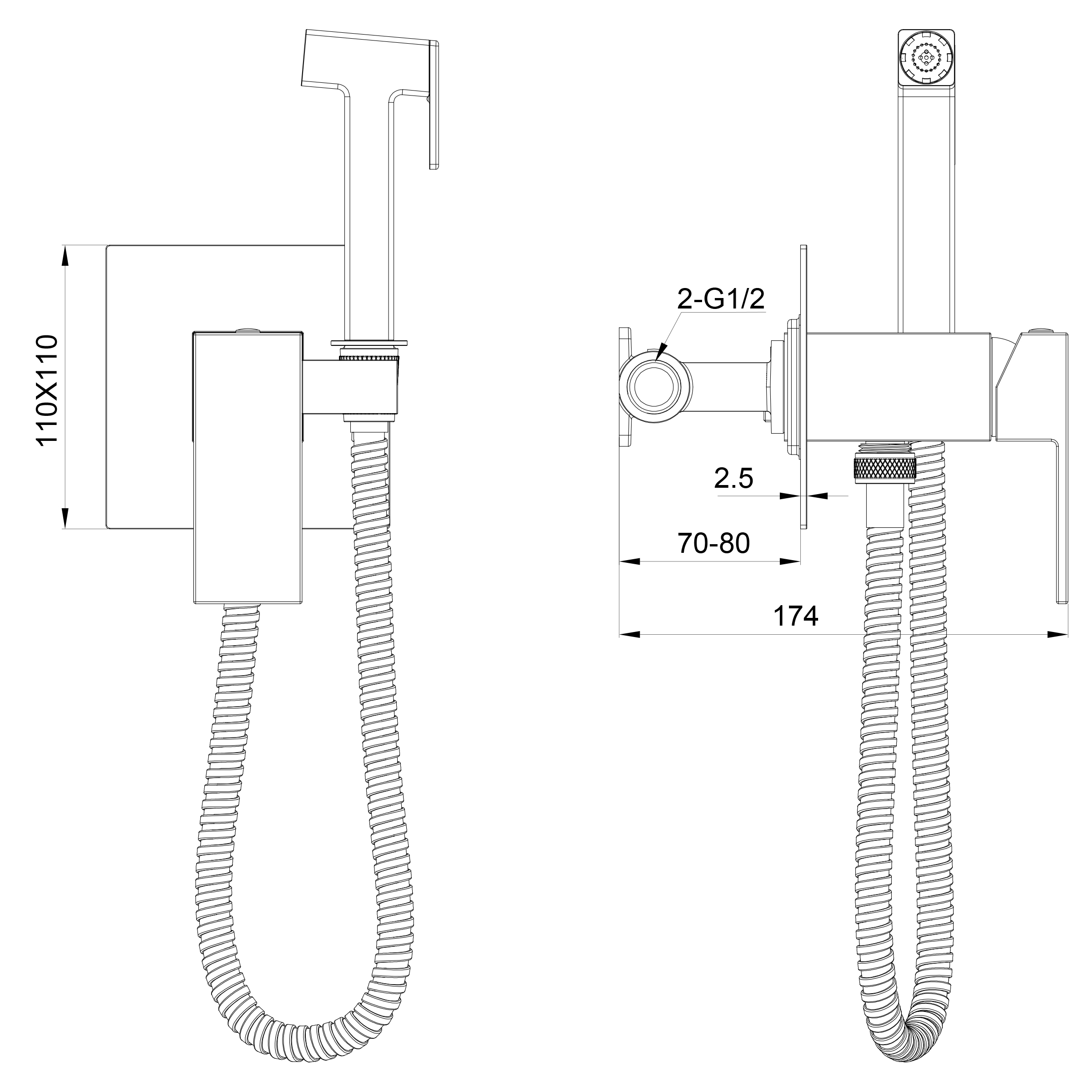 Смеситель , Душевой шланг , Держатель для душа , Лейка гигиенического душа , Монтажный комплект