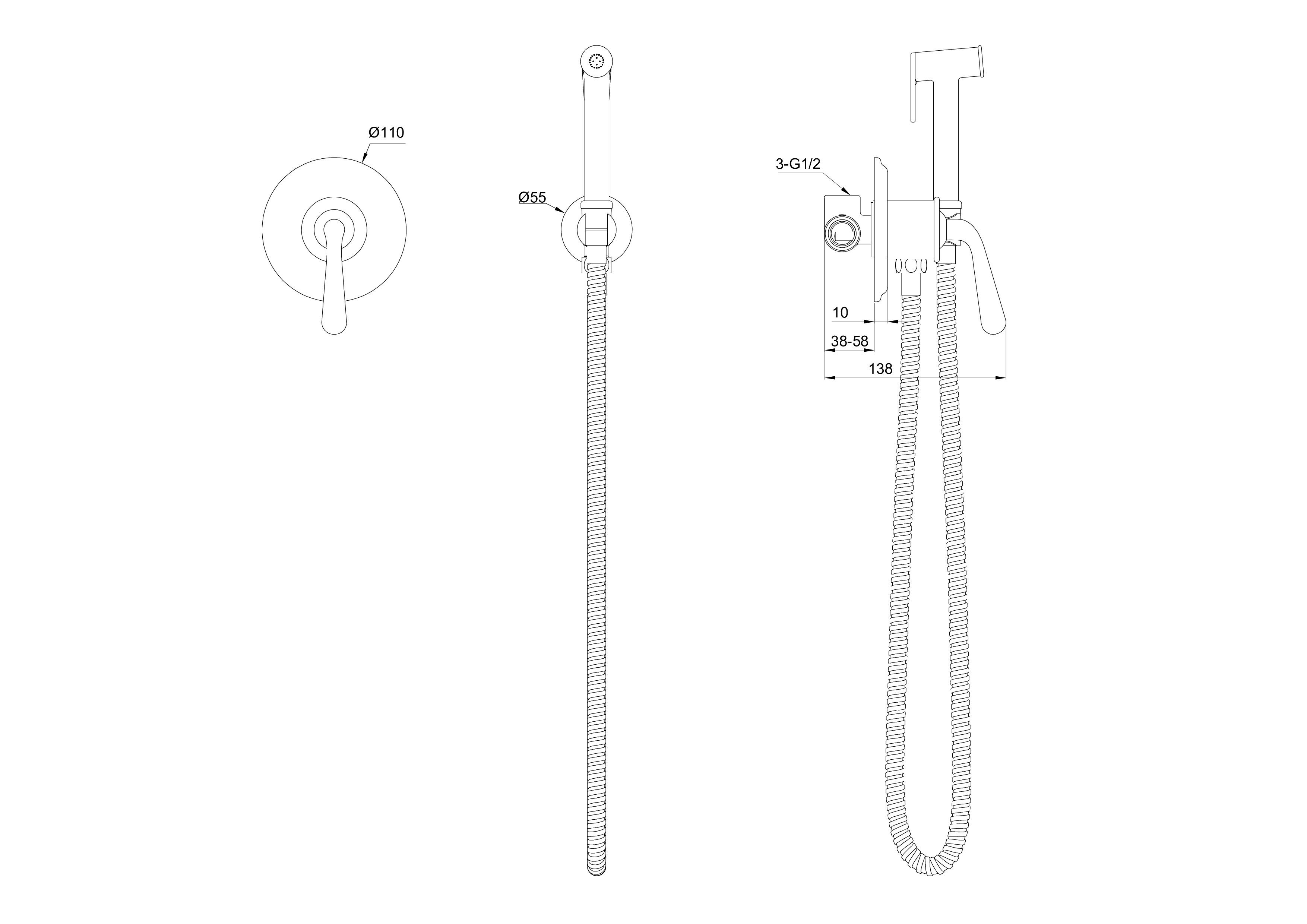 Смеситель , Душевой шланг , Держатель для душа , Лейка гигиенического душа , Монтажный комплект