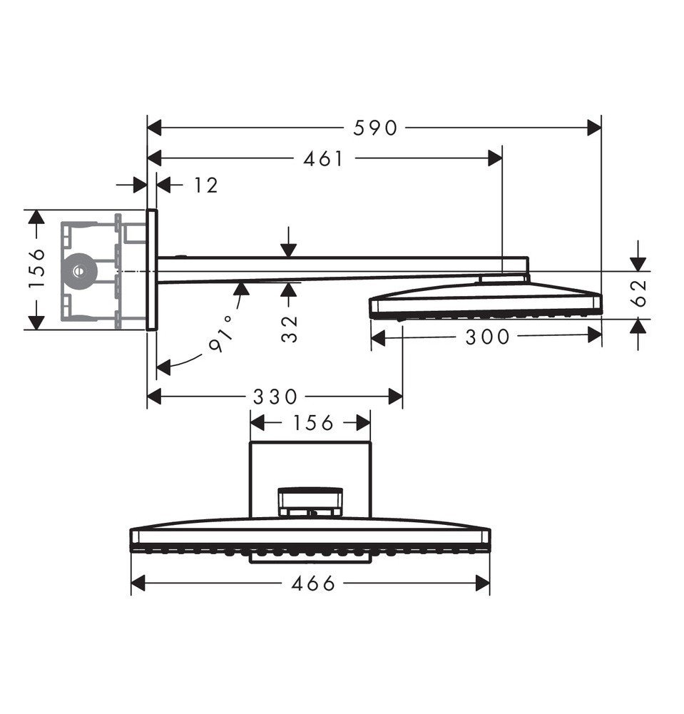 - Размер душевого диска: 466x300 мм;