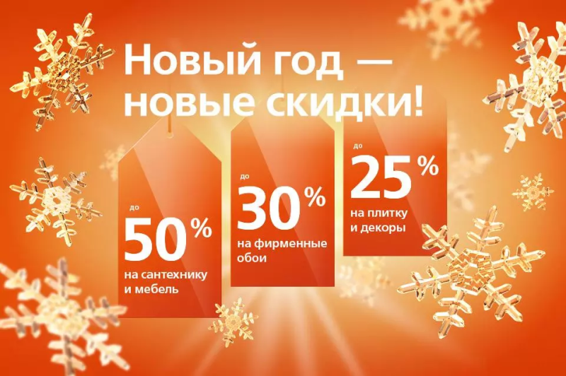 Встречайте Новый год — и новые, очень выгодные предложения от KERAMA MARAZZI. Праздничные условия действуют на плитку, декоры, фирменные обои, мебель для ванных комнат и сантехнику!